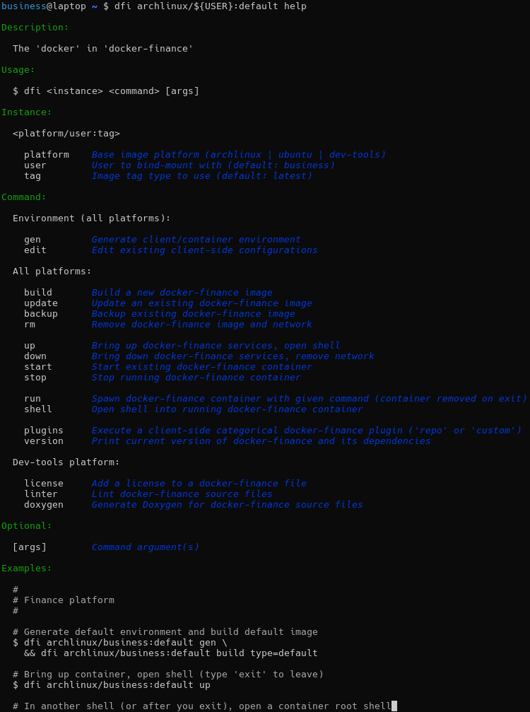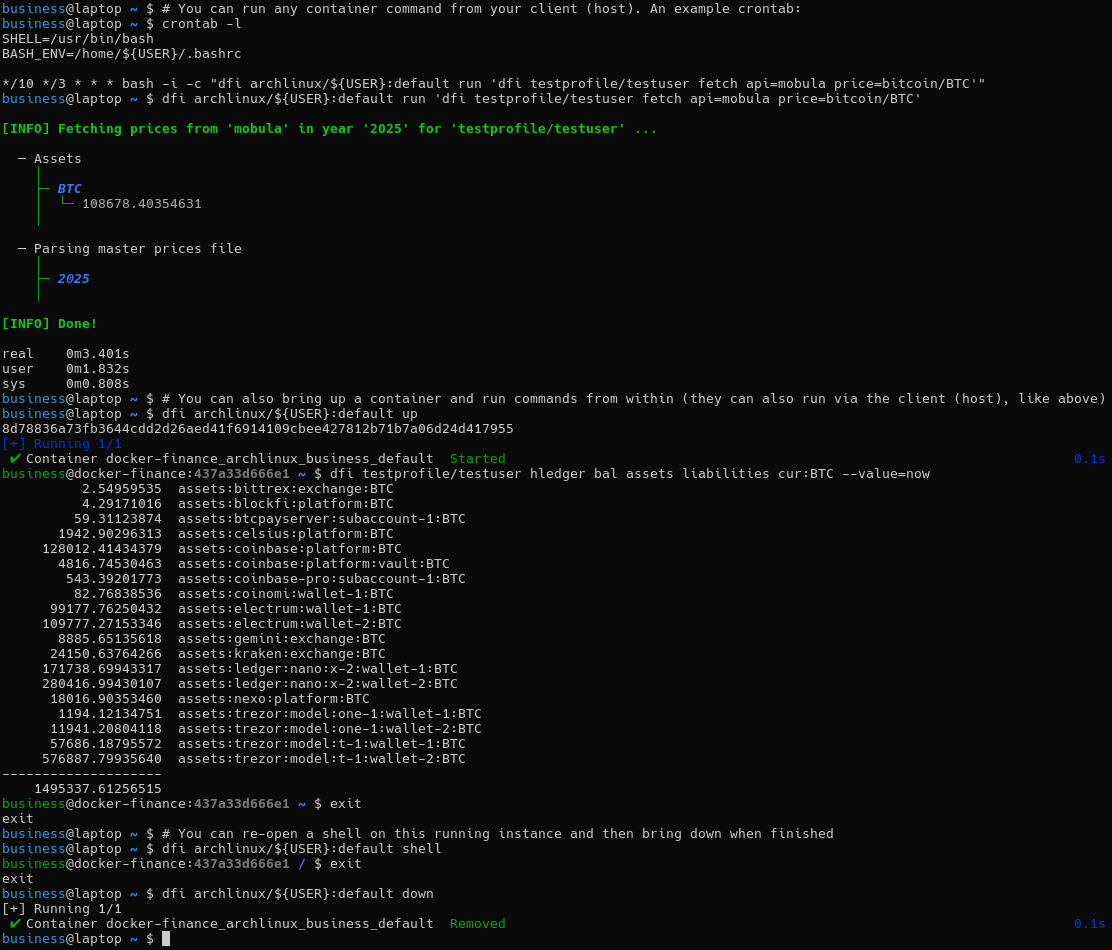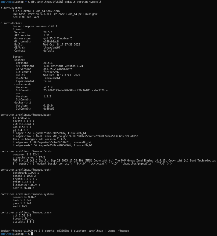 docker-finance (`dfi`) is a translucent container system that gives you the power of a privacy-focused, highly uniform system of financial management.