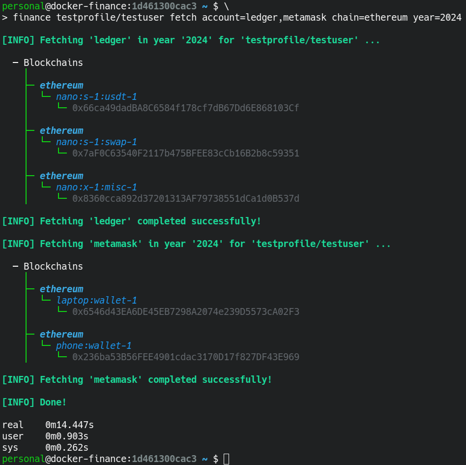 finance testprofile/testuser fetch all=price year=all && finance testprofile/testuser import year=2018