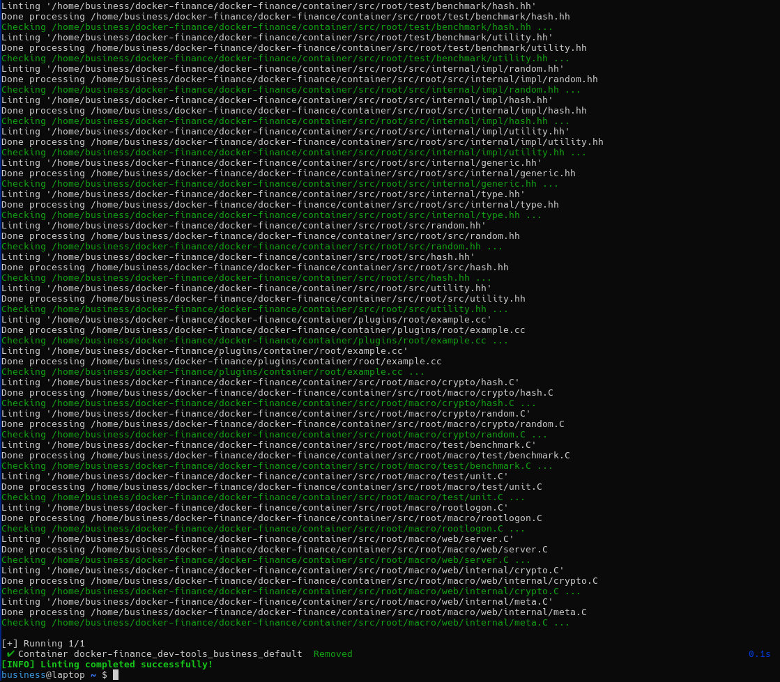 The *finance* in `docker-finance`; as seen from within a running *finance* container; with various types of output.