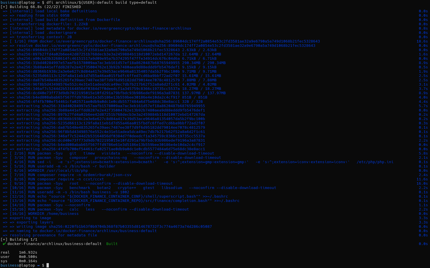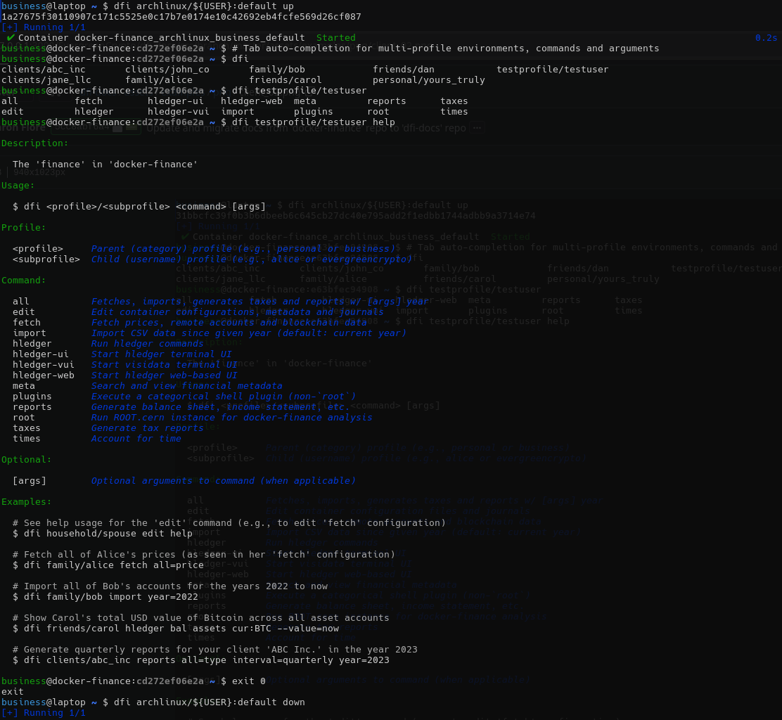 docker-finance (`dfi`) is a translucent container system that gives you the power of a privacy-focused, highly uniform system of financial management.