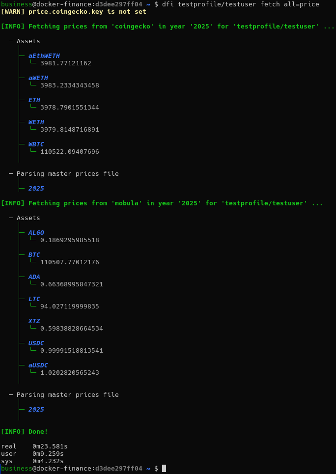 Tax preparation; report generation; metadata management & analysis, and an entire suite of financial tools are easily at your disposal - entirely managed through `dfi`.