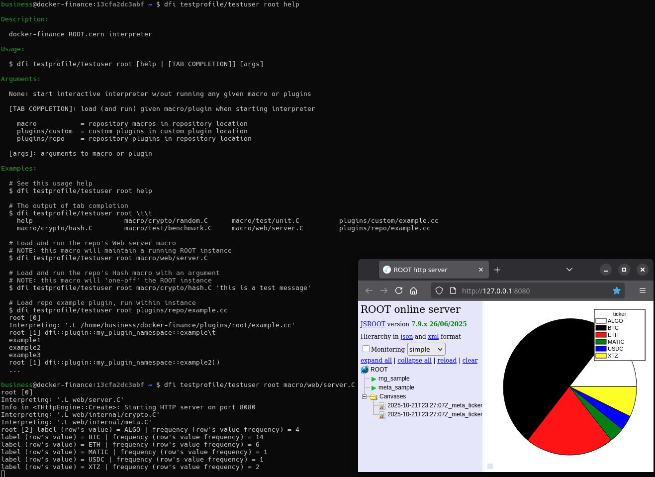The *finance* in `docker-finance`; as seen from within a running *finance* container; with various types of output.