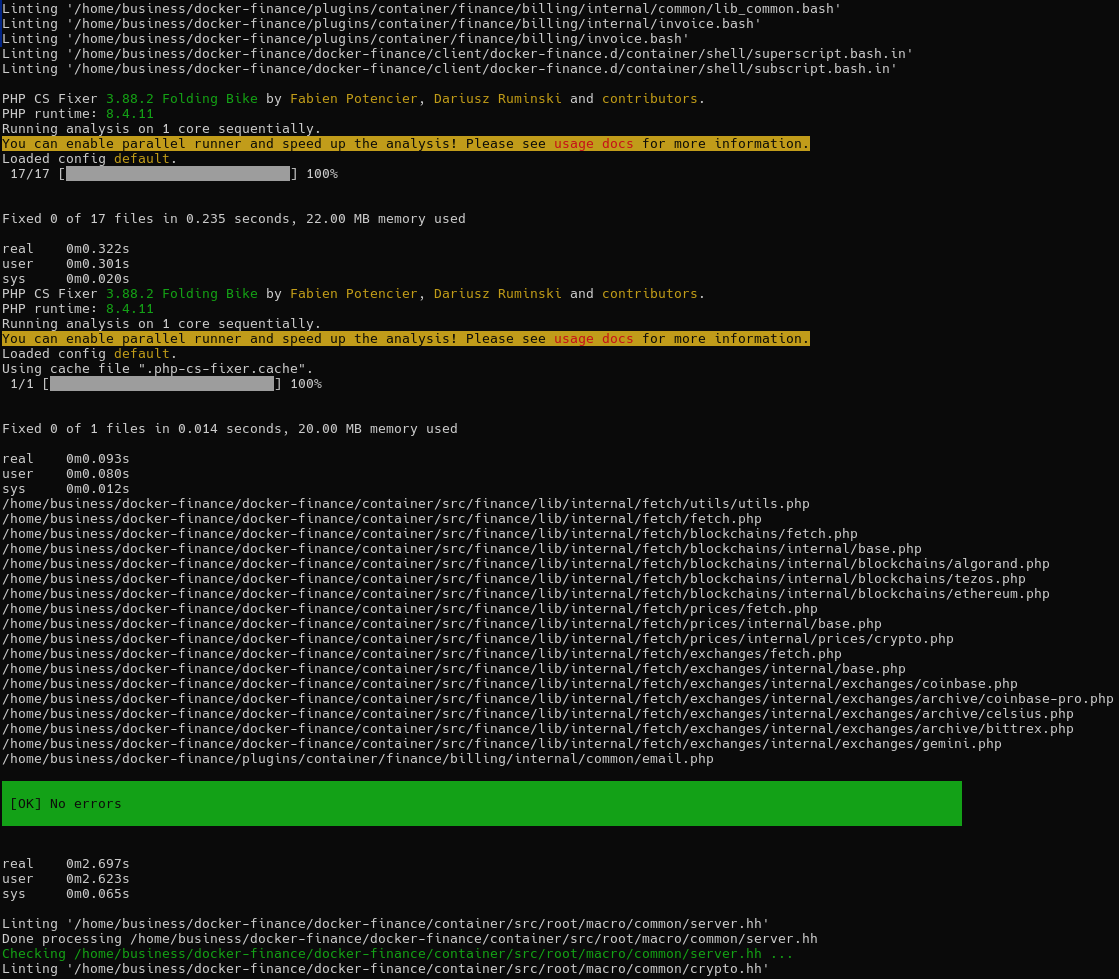 The finance in docker-finance; as seen from within a running finance container; with various types of output.