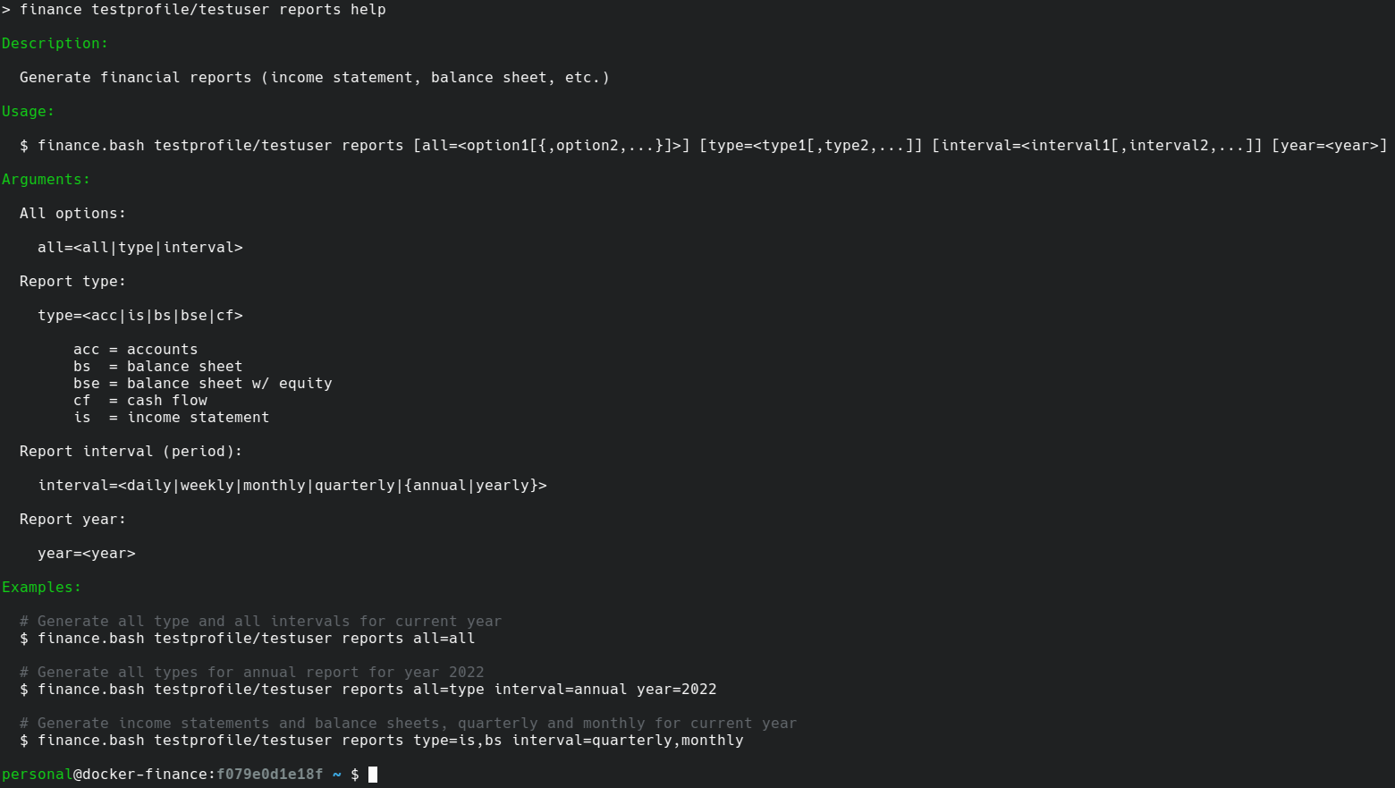 docker-finance is not your typical Docker image in which you simply pull and containerize, but rather it's an image-based accounting system that operates transparently between your client (host) and container; keeping your finances containerized, with all the benefits of containerization.